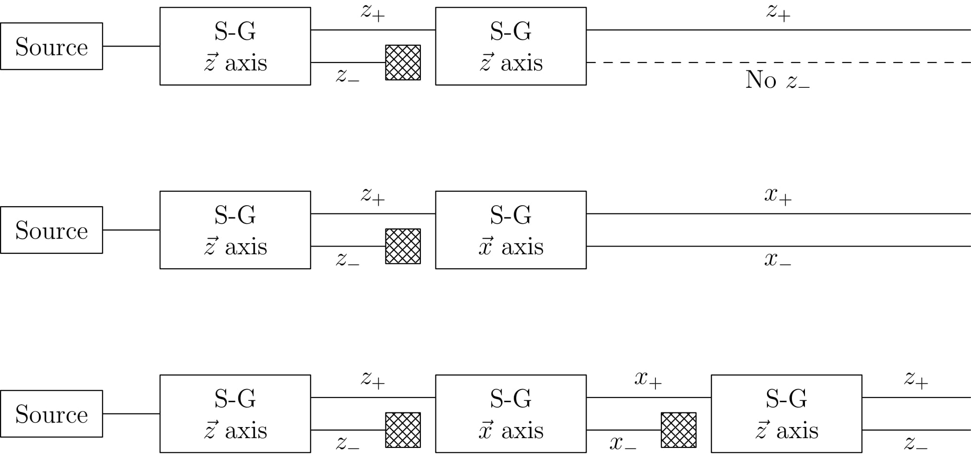 - $\left|\uparrow_{z}\right\rangle+\left|\downarrow_{z}\right\rangle \sim \left|\uparrow_{x}\right\rangle$