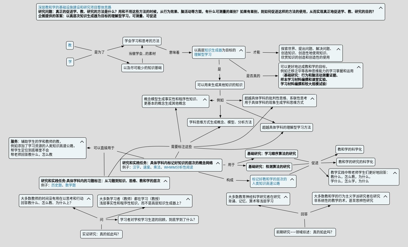 - meaningful v.s. rote learning, with/without advanced knowledge generators