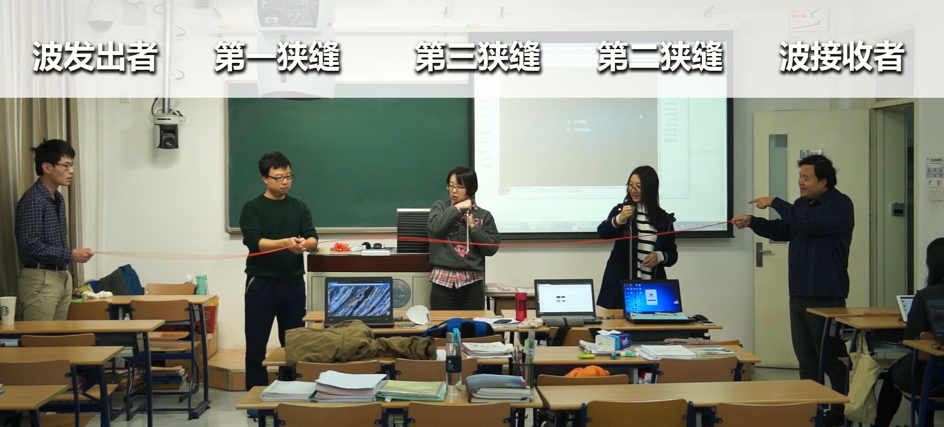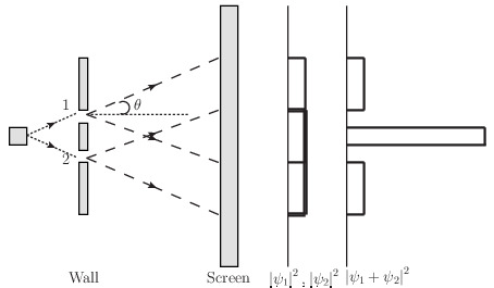 把光看做经典波,两个小缝当光源,经典波相加,相位差异,可以解释干涉现象