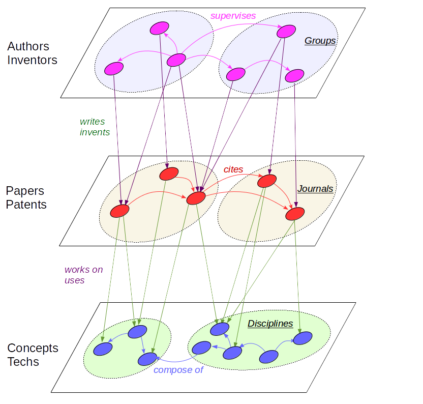 - Intralayers: author-writes-paper, paper-works on (makes use of)-concept